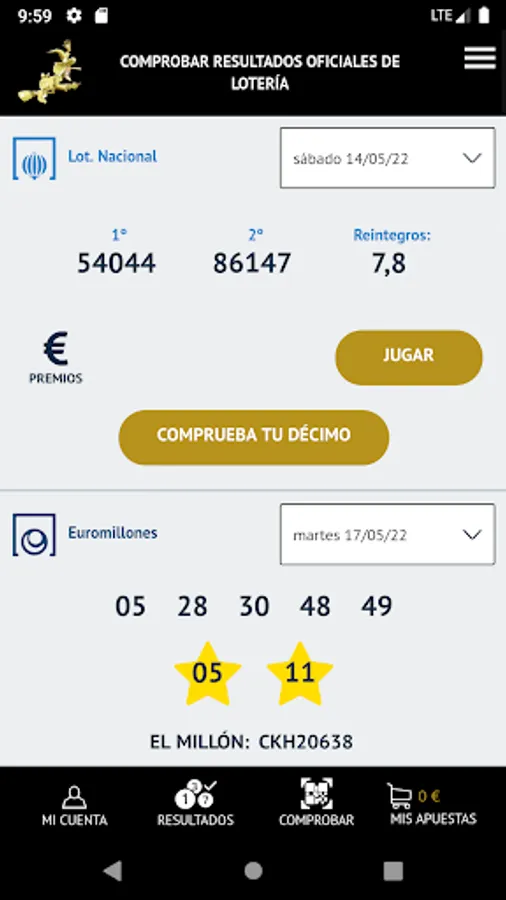 * Latest Results: Know the results of all national lotteries and bets (Spain) in real time.