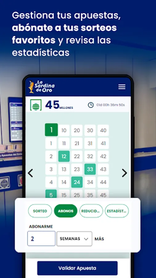 To play State Lotteries and Bets in our app, you will have to create an account, this will allow you to repeat your plays, receive alerts of your prizes, manage your bets, manage your balances ... And of course play bonoloto and play primitiva online, without the need to move, from the palm of your hand and with the peace of mind that a trusted administration offers you.