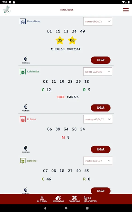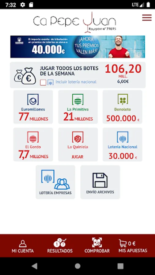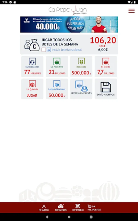 Remember, CapepeJuan Lottery is the most reliable free app to check Lottery, Quiniela, EuroMillions, Primitive, Child, Christmas Lottery, BonoLoto and all the Lotteries and Bets of the State of Spain. May LUCK be with you!