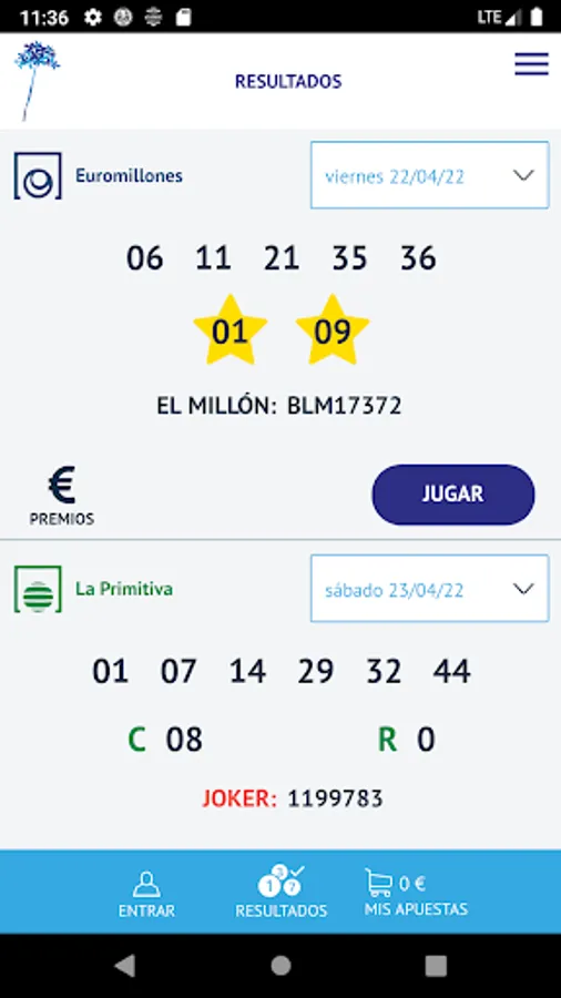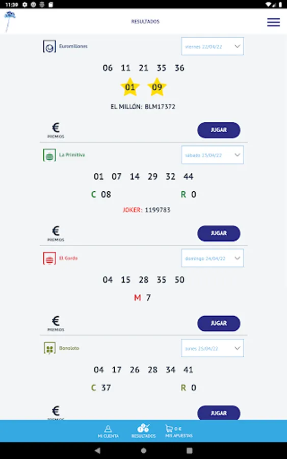 * Latest Results: Know the results of all national lotteries and bets (Spain) in real time.