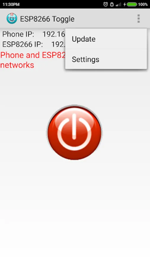 A long press on the power button image will make a URL request to ESP8266 with the variable and value you set in the options.