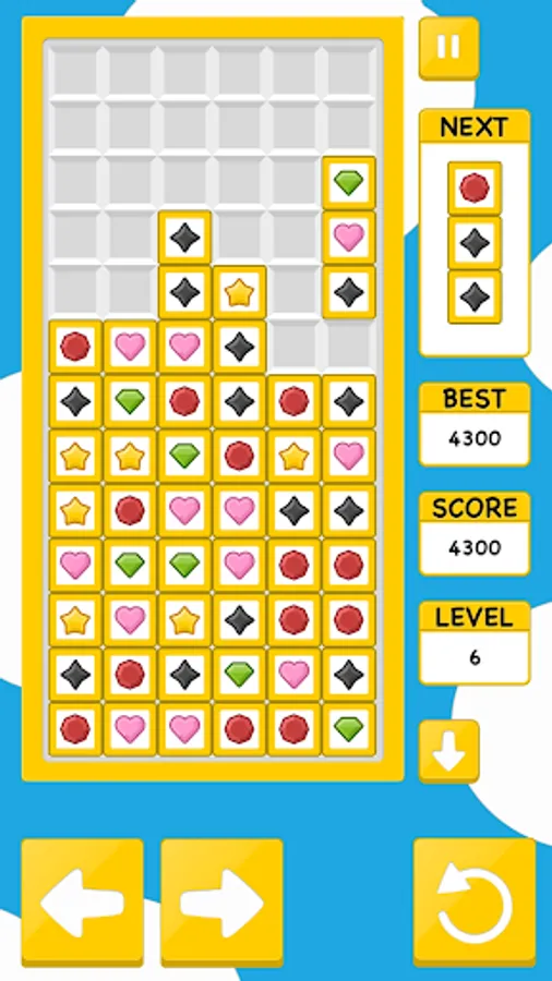 As the game progresses, it is increasingly difficult to collect jewel blocks because they fall faster from the sky.