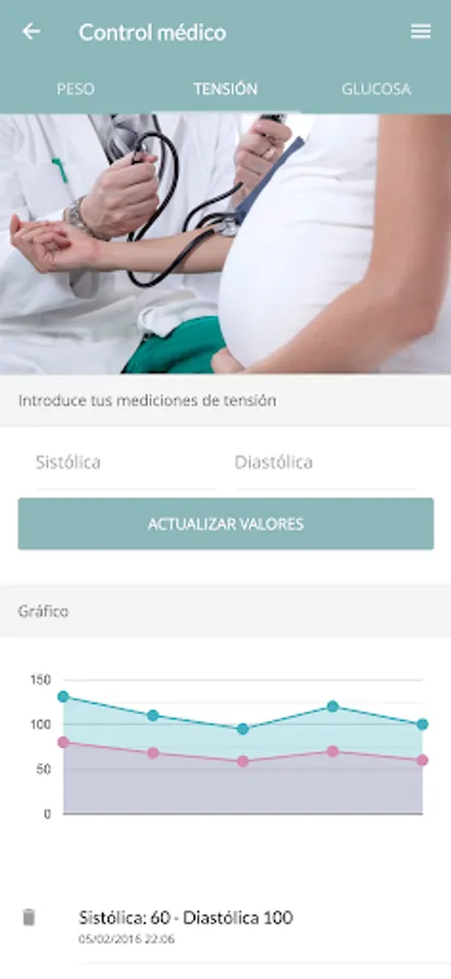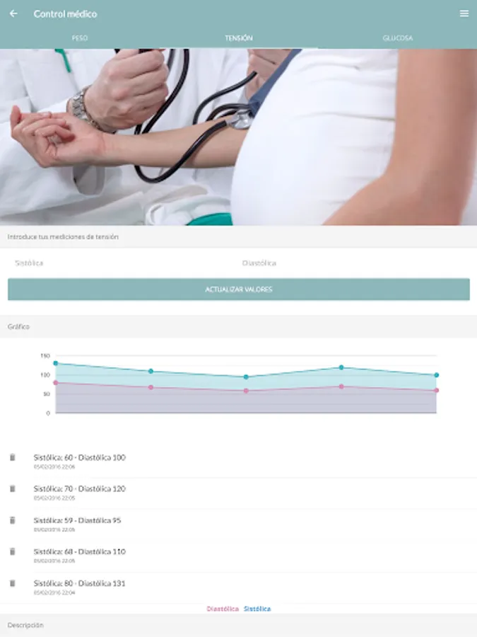 Autonomously, the patient will be able to record her weight, blood pressure and glycemic values. You will have detailed control charts that guarantee a healthy weight gain.