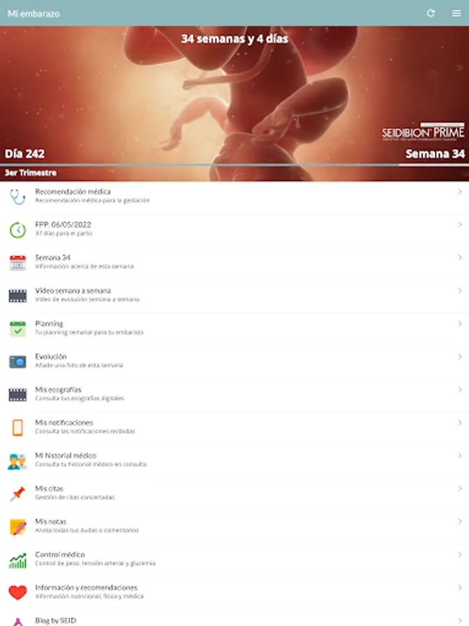 Each week you will have detailed information, developed by our medical team, of everything that happens in the development of the patient and the baby.
