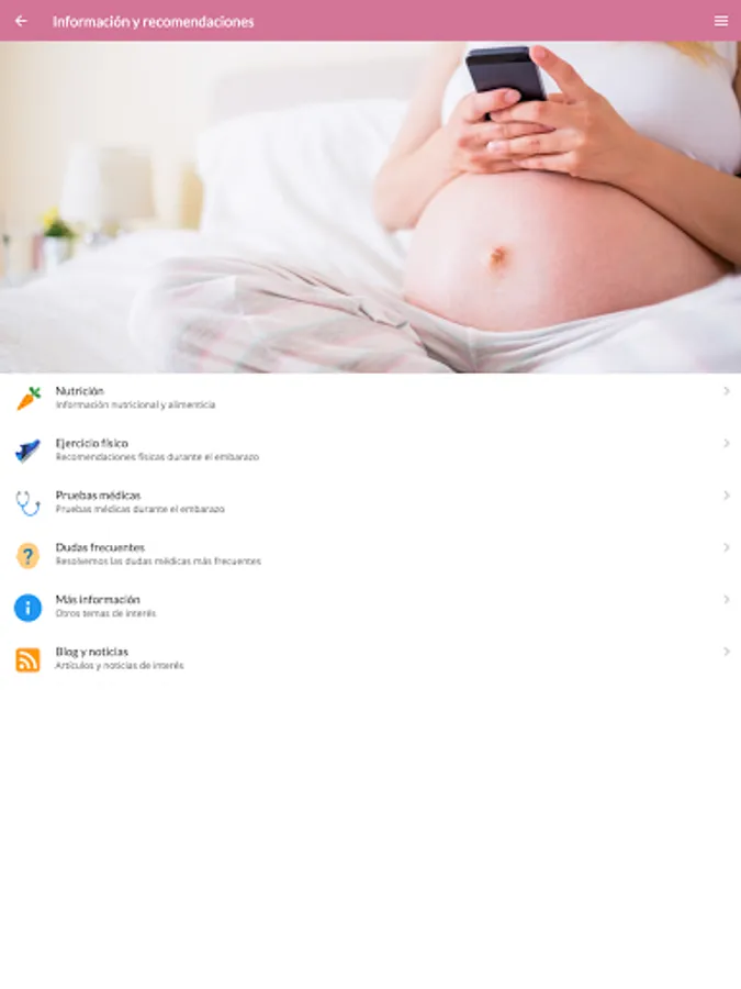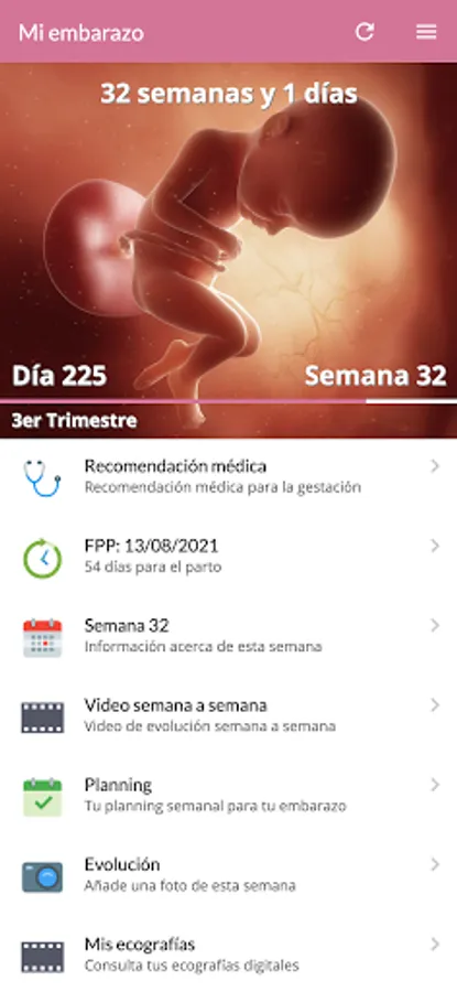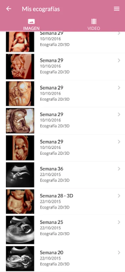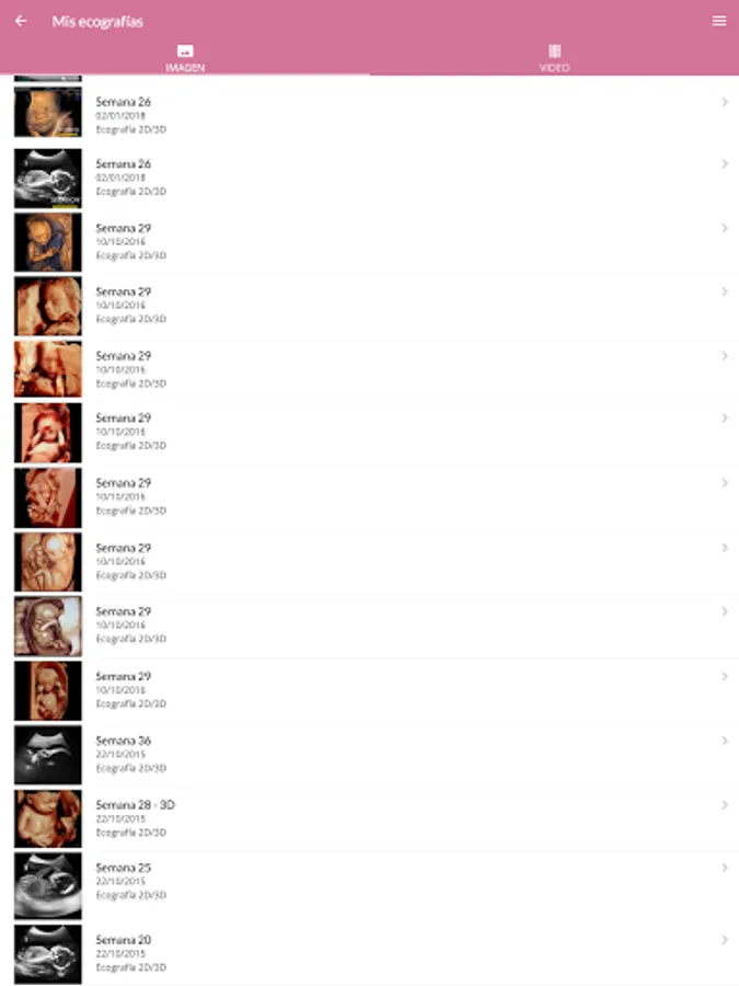 The App will know what day and week of pregnancy the patient is on and will show information, illustrations, 2D and 3D ultrasounds of the current moment.