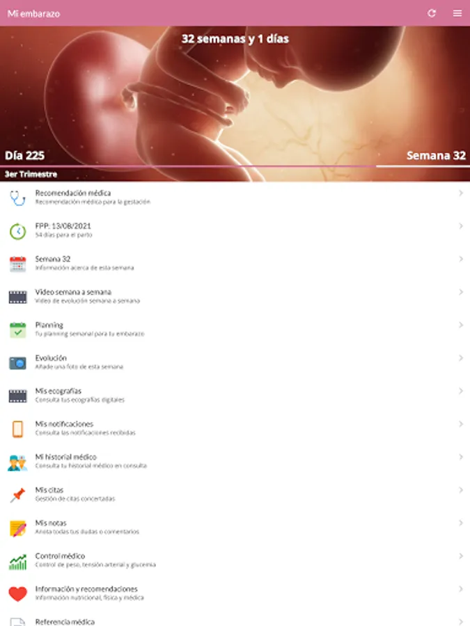 Each week you will have detailed information, developed by our medical team, of everything that happens in the development of the patient and the baby.