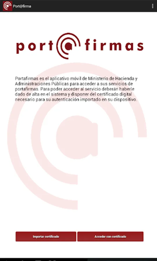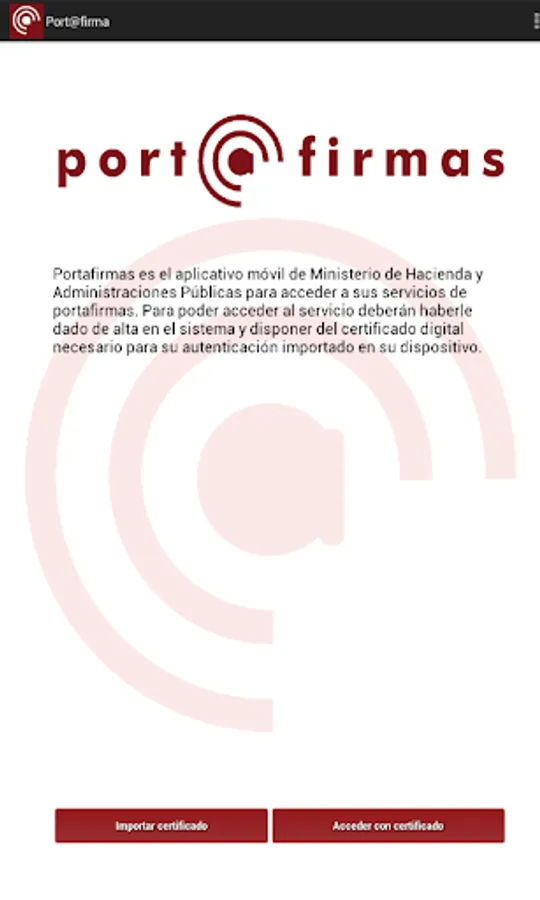Port @ firmas is the mobile application of the Ministry of Economic Affairs and Digital Transformation to access its portafirmas services. You must be a user of Port @ signatures to use this application.