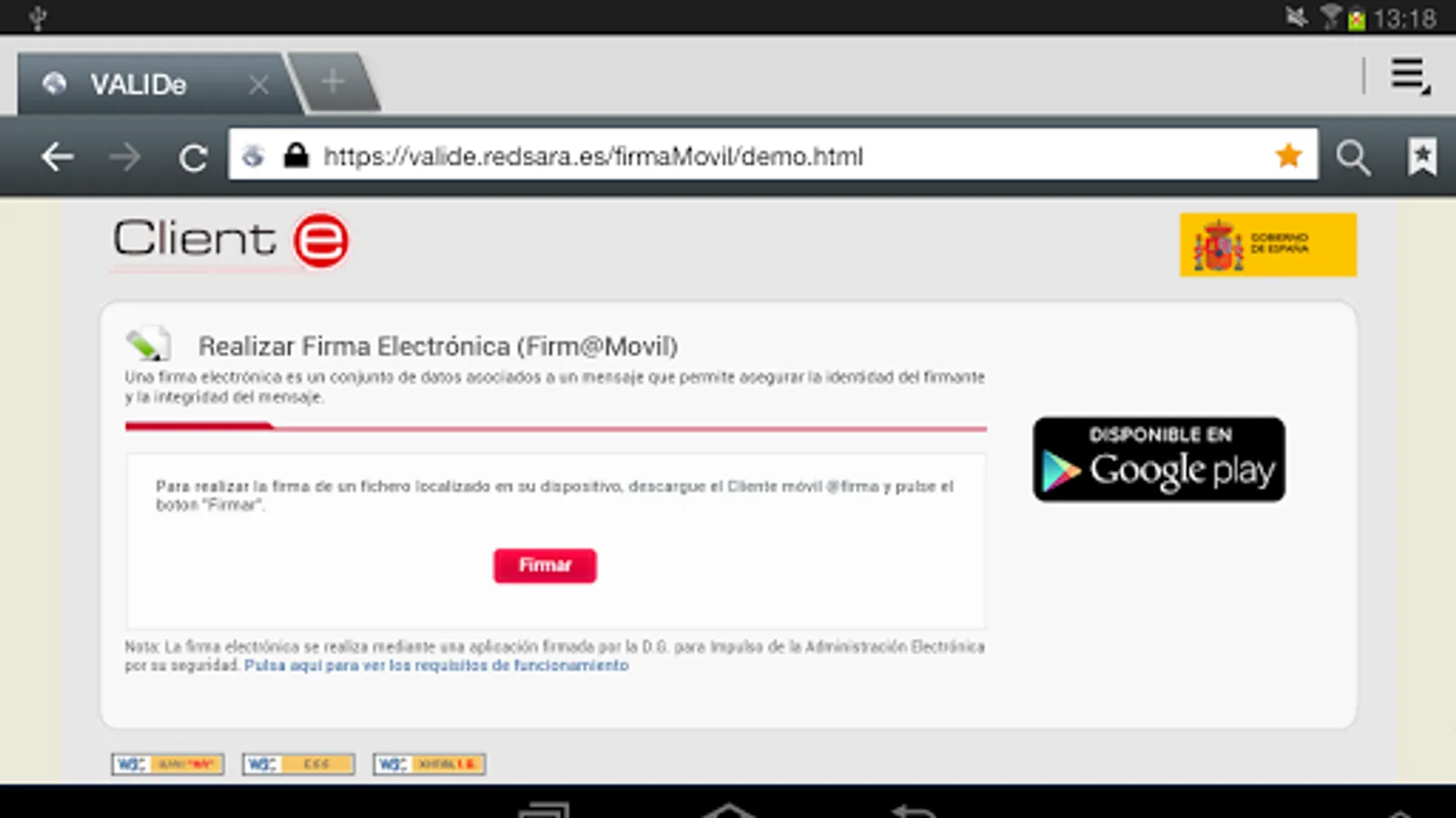 Download this application only by indicating their telematics service provider. You can use a demonstration through the following website: https://valide.redsara.es/firmaMovil/demo.html