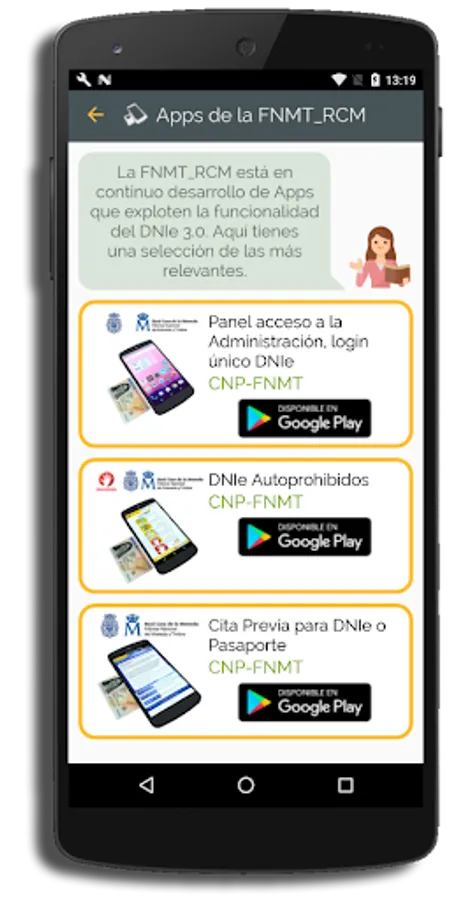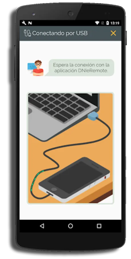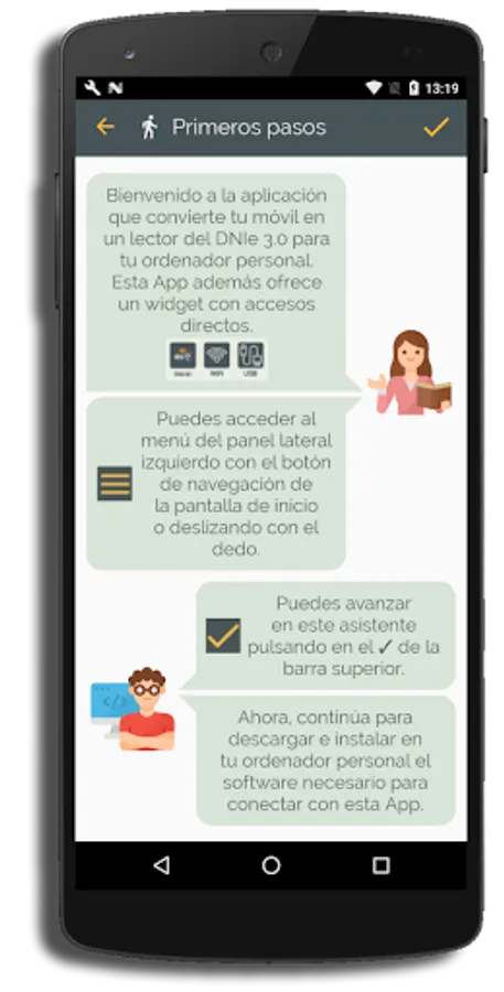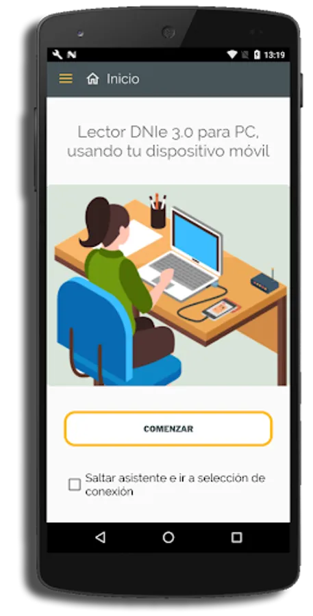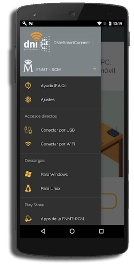 "DNIeSmartConnect" is an application that allows you to use your mobile device as an NFC reader connected to your PC or laptop. Includes an optional widget.
