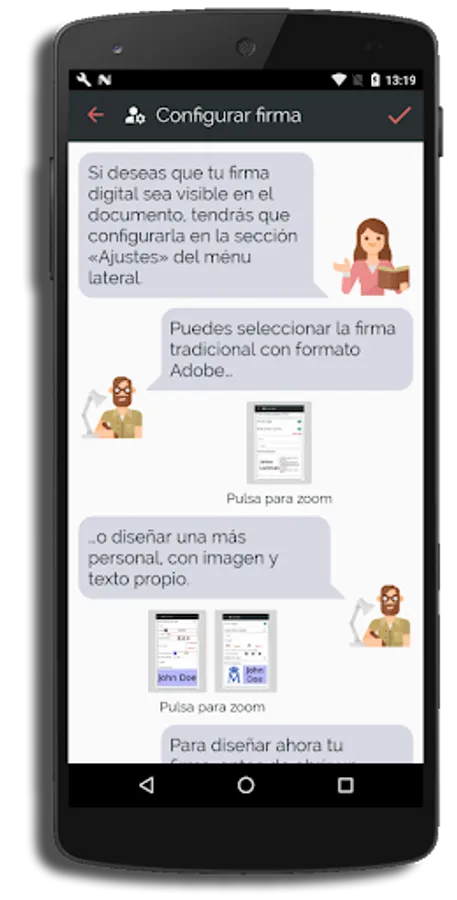 You can make a visible signature, verify the signature and share the document, in addition to accessing it in a controlled way.