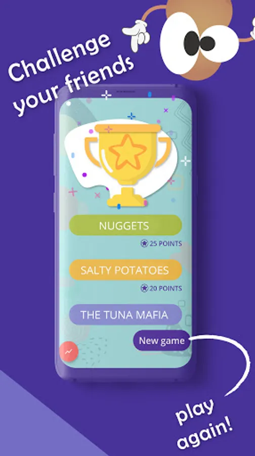 Ideal for having fun with friends or family, organize in 2, 3 or 4 teams, select between 5, 10 and 15 rounds of play, select time and fun will come alone!