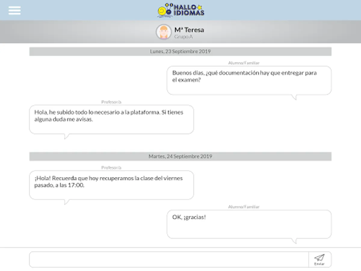 The Hallo Idiomas app helps teachers to keep both students and families informed of day-to-day activities at the center.