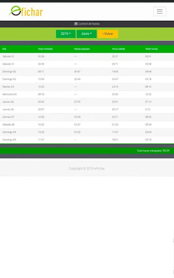 eFichar is the perfect tool for the worker's time control, whether the workday begins and ends at the company's headquarters or if the workday starts from another place thanks to the geolocation system.