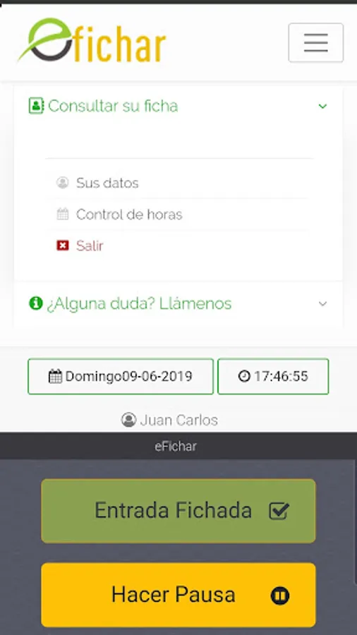 eFichar automatically records the hours and breaks made by employees and geolocates them at the time of signing.
