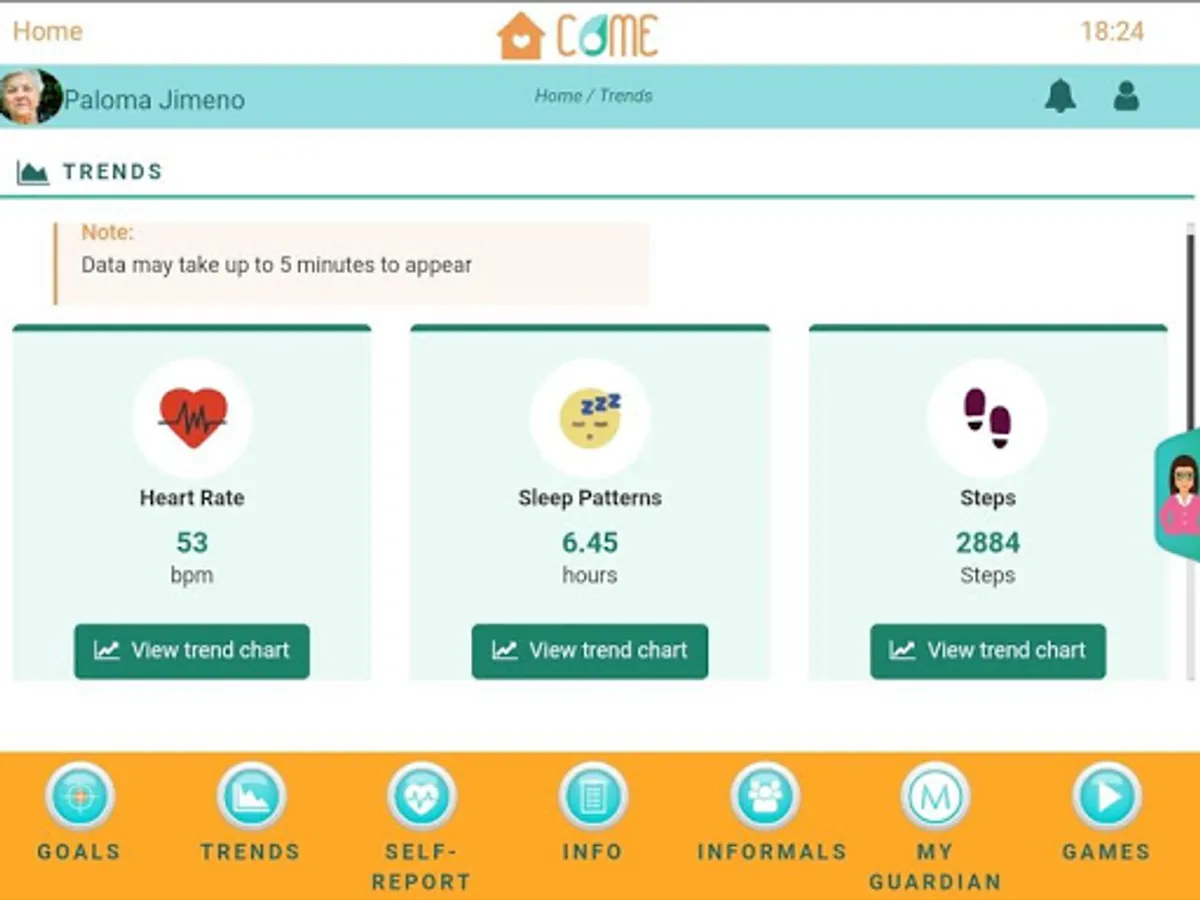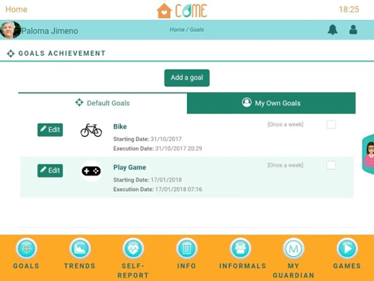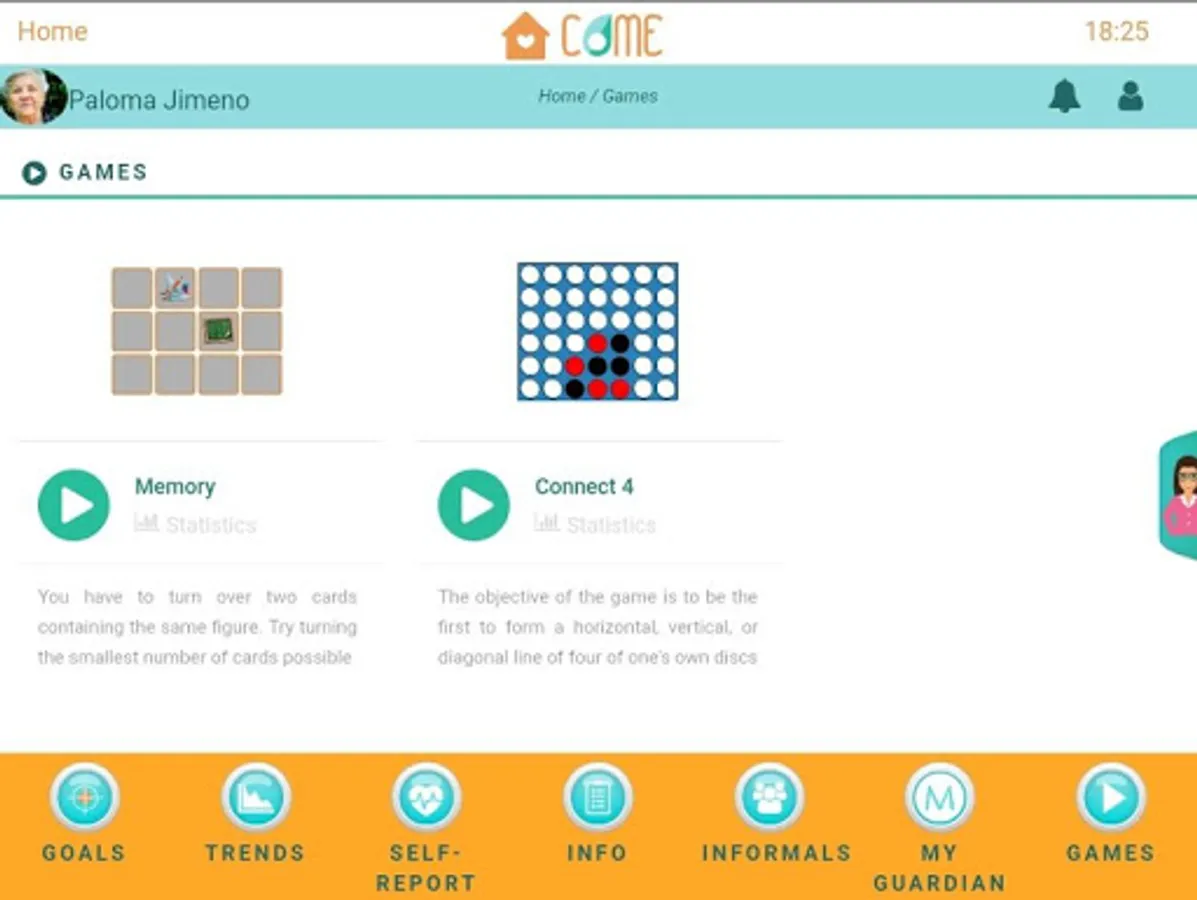 The CoME project aims to facilitate the self-management of seniors, encouraging them to have a healthier lifestyle and helping them in the prevention/detection of MCI risks. To reach these aims, the application operates through: the establishment of personalized health goals for seniors, the use of wearable devices for continuous monitoring of their ADLs, the performance of self-assessment tests and the participation in brain games.