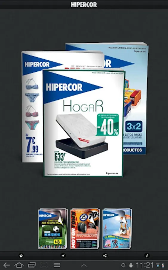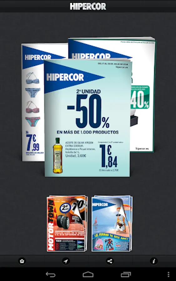 Discover the latest and best proposals Hipercor in fashion, electronics, home, sports, food, toys ... through our publications and catalogs. You can also find your nearest center using the locator Hipercor application.
