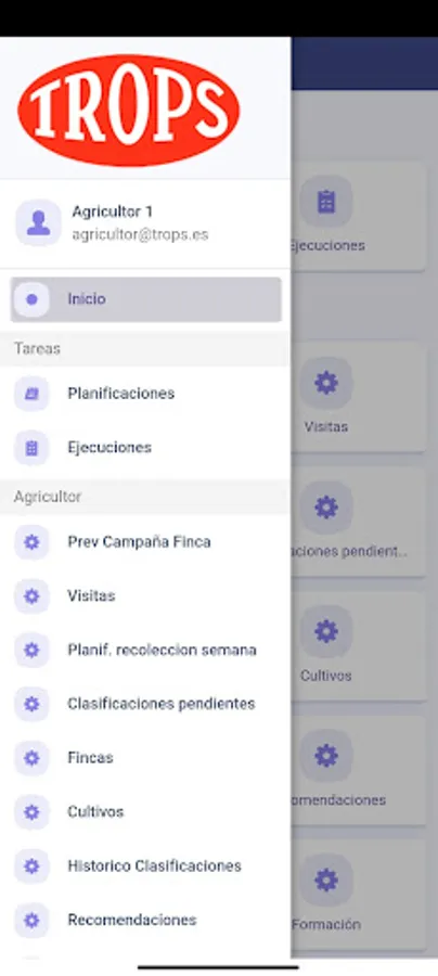 Through this application, TROPS partners and collaborators can carry out personalized and real-time monitoring of harvest forecasts, kilos collected, classifications, visits by agronomists, etc., as well as access the contents of the training section . Each partner/collaborator will be able to access this application only using their unique passwords provided by TROPS.