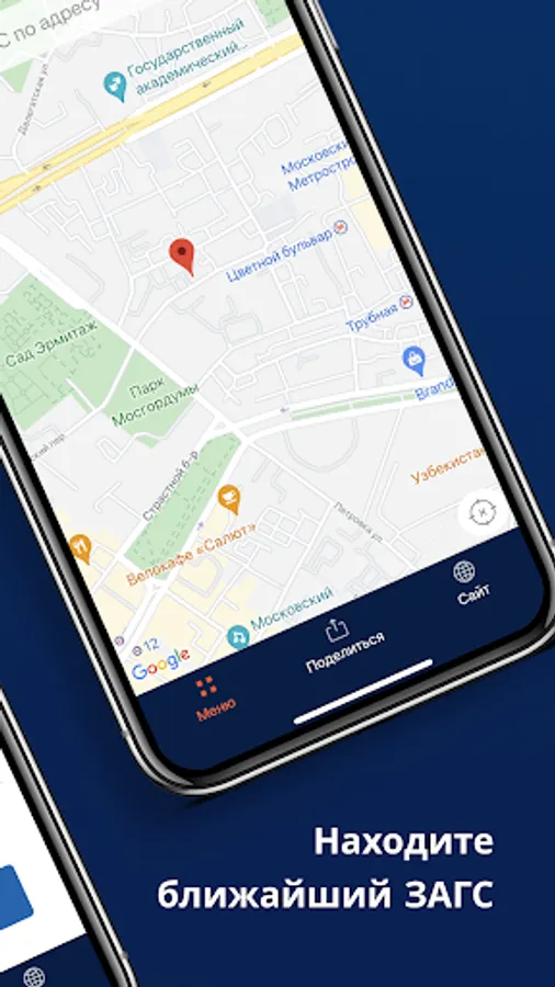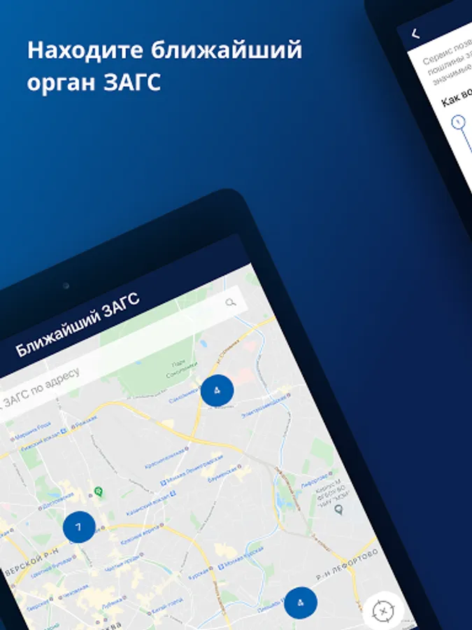 • "Nearest registry office" with the ability to find the nearest registry office on the map with the definition of the user's geolocation.