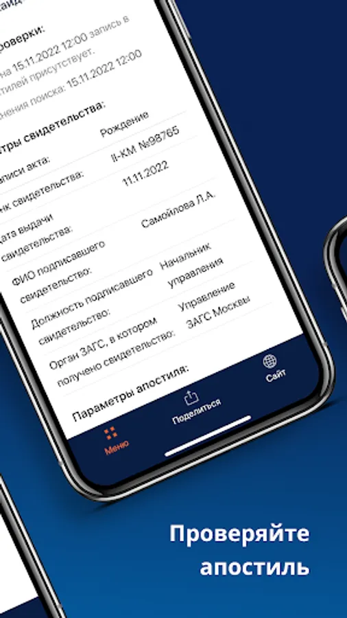 With the Registry of Civil Registry app, checking the certificate and apostille, generating a receipt and paying the state fee, as well as finding the nearest registry office have become even more convenient. To register, simply enter your name and phone number.