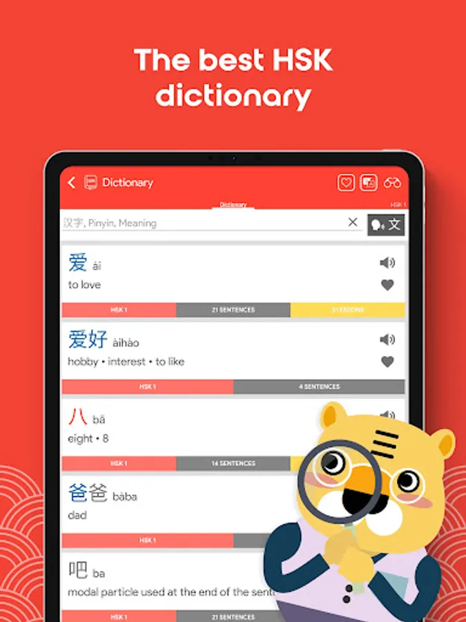 ● You will learn to write: an advanced writing system with automatic correction will allow you to easily learn how to write any Chinese character stroke by stroke.
