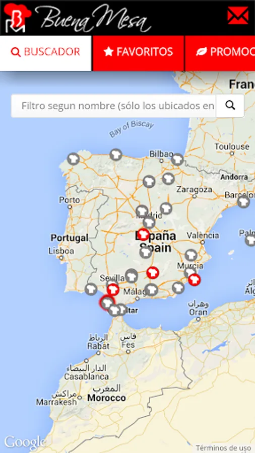 * Search with Geopositioning on the map of Spain. It is important to be clear that we do not collect or use user geo position data. We only use the map to show the location of the premises.