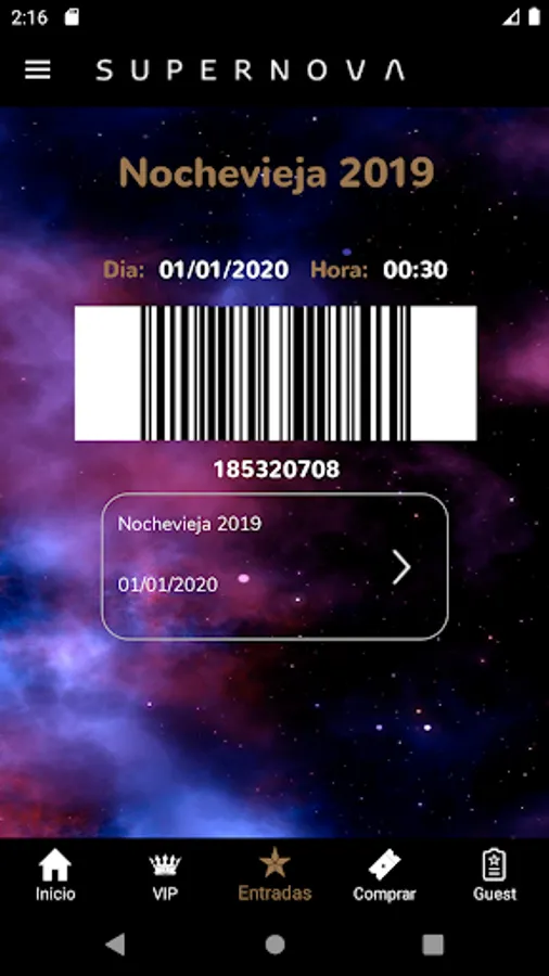 From now on it will be more comfortable and faster to get your Supernova tickets. Download this application and access all privileges from your mobile. Forget the queues and get your tickets with a single click, access the VIP area, our guest list, private events, limousine service and lost items.