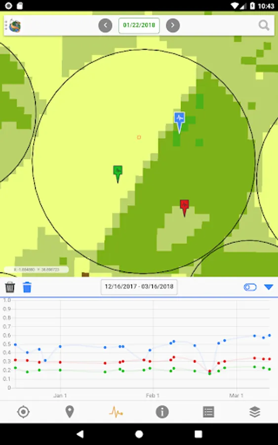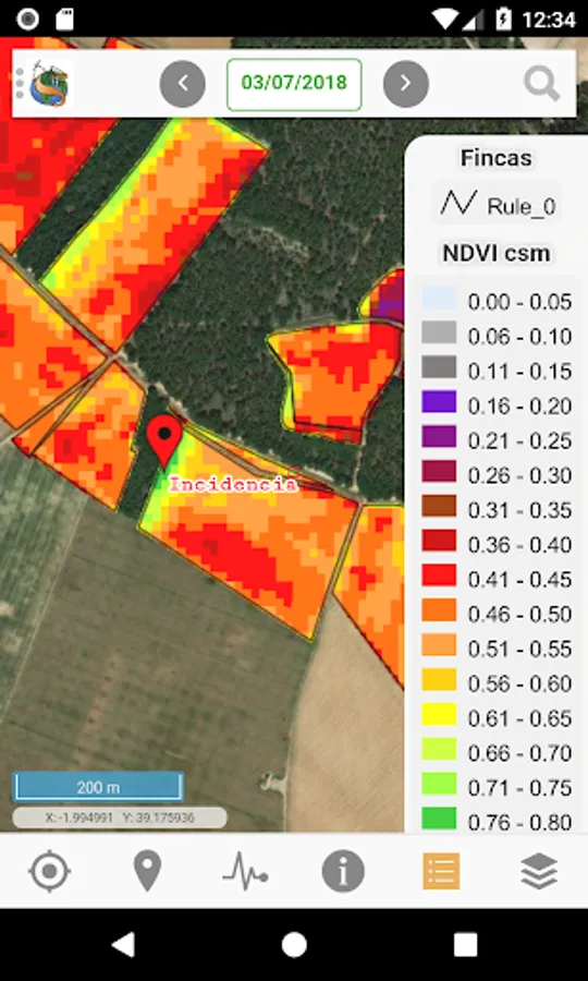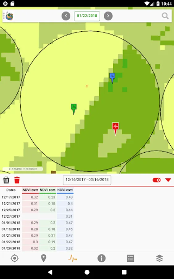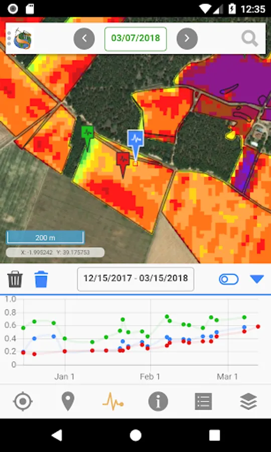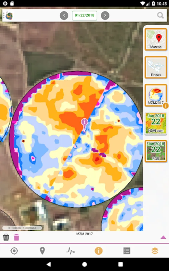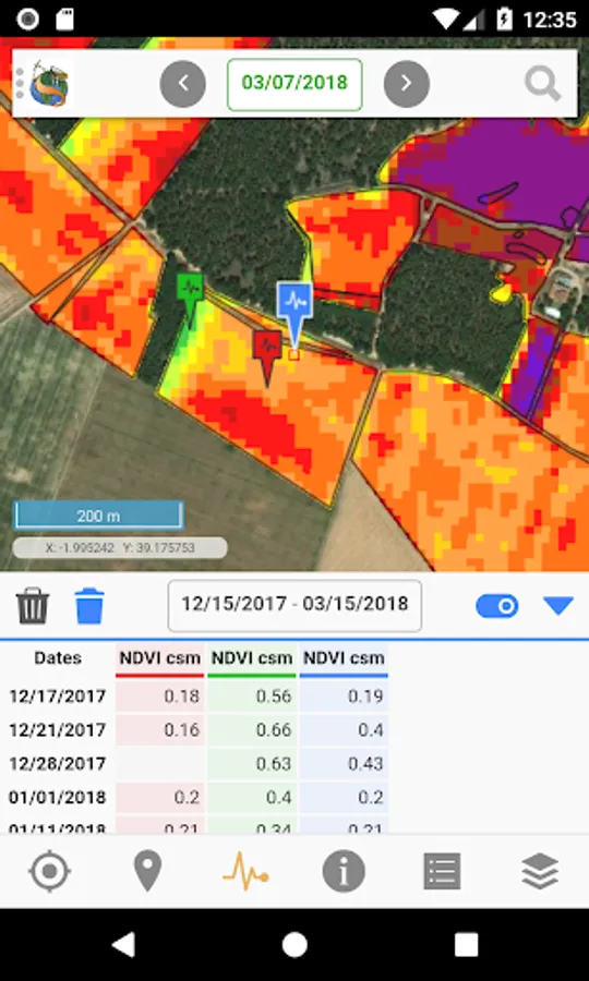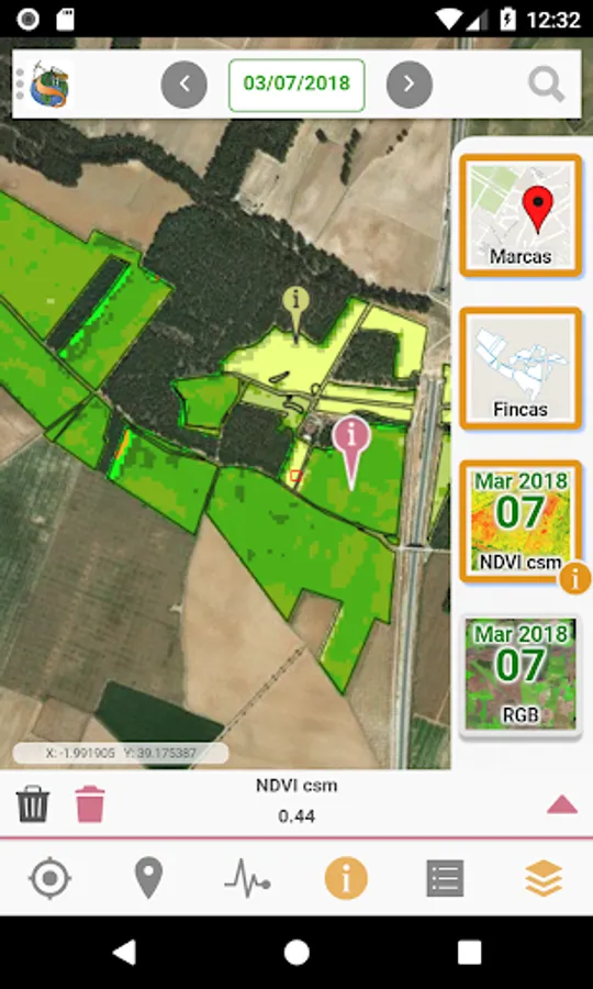 It enables crops monitoring throughout their growth cycle in a simple and intuitive way for improving crop management. The state of the crop, photosynthetic activity and variability within the plot is displayed. For that, dense time series of images of the main Earth observation satellites from NASA and the European Space Agency are used, approaching in many cases the frequency of one image per week.