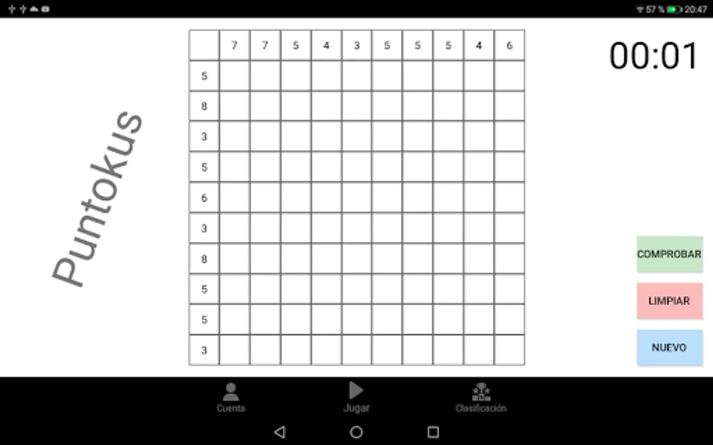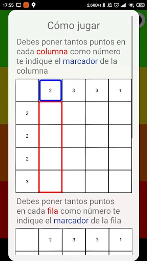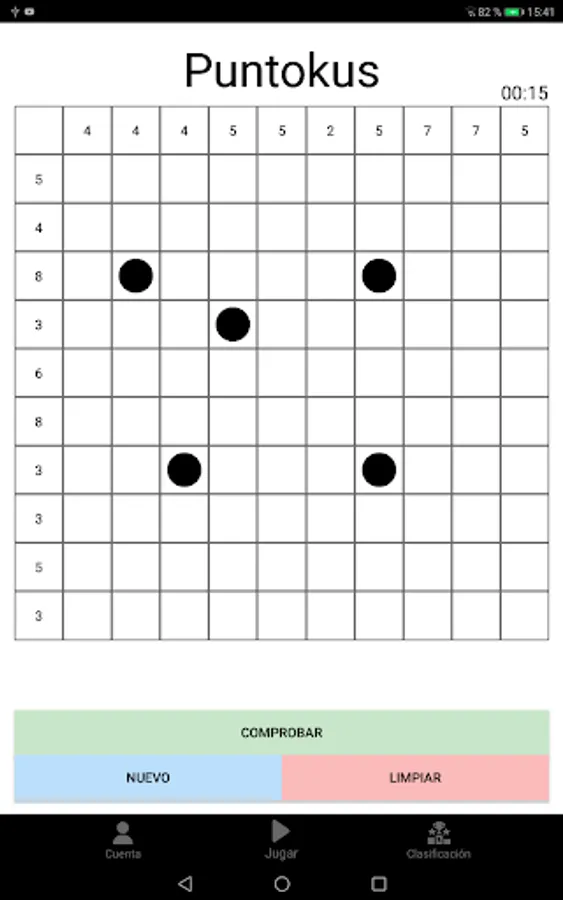 Game in which you must place as many points in each row and column as the markers indicate, with up to four levels of difficulty.