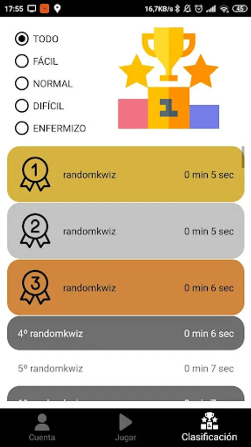 Solve the boards in the minimum possible time and see your position in the global ranking.