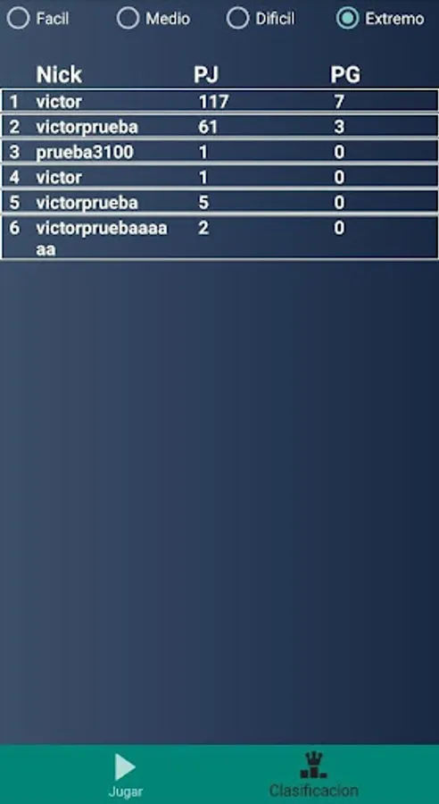 The more games you have won, the higher you will be in the ranking according to the level of difficulty you have been playing.