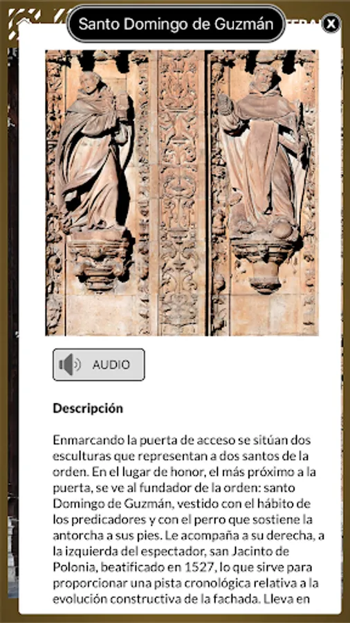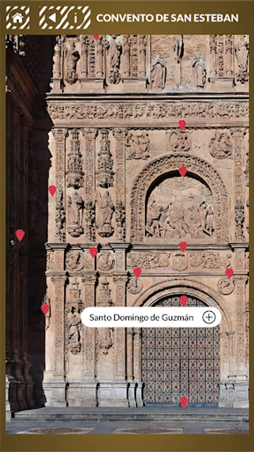 A unique and surprising way to know in detail each of the figures and motifs that make up the facade of the Convent of San Esteban de Salamanca.