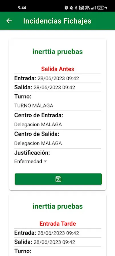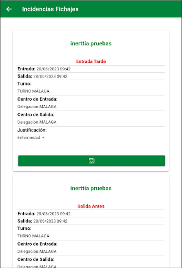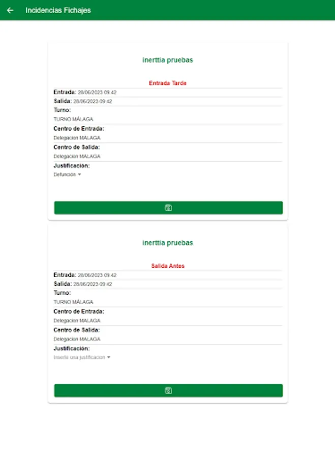 Application for the control of presence, carrying out transfers, consultation of transfers and consultation of incidents in addition to being able to justify them