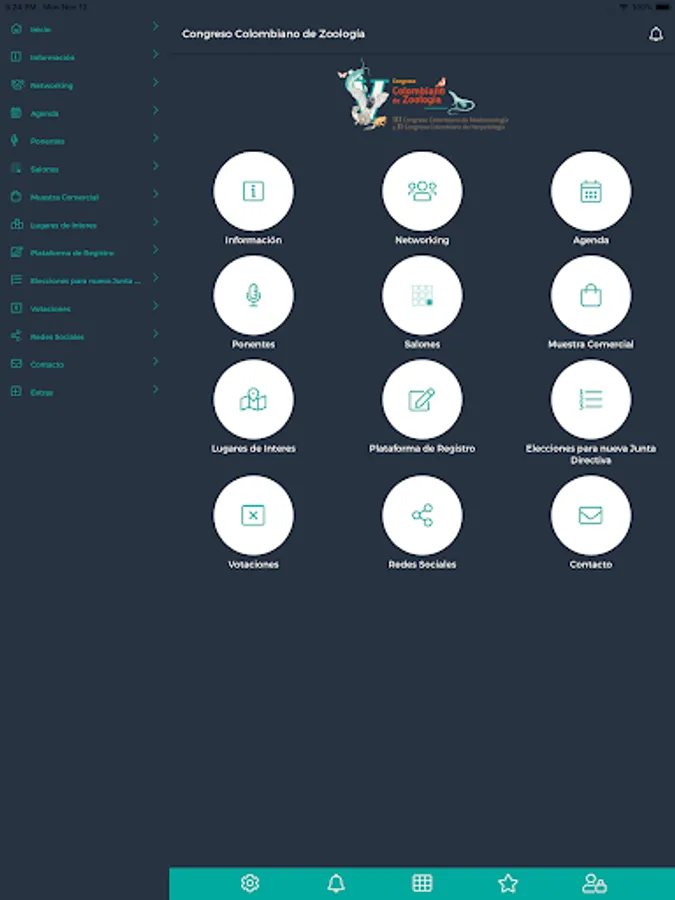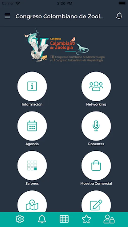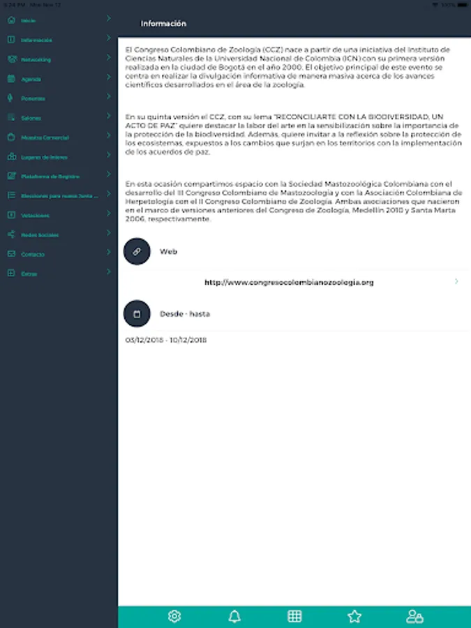 Application of the Colombian Congress of Zoology. It shows key information such as the event program, participants, trade show and much more.