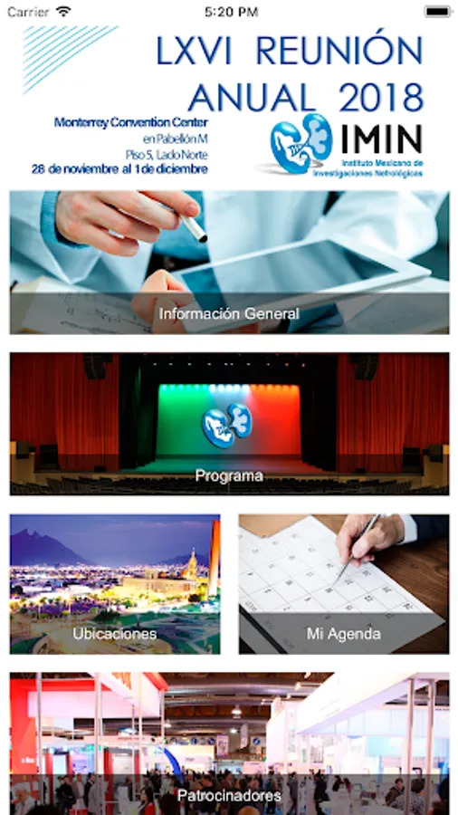 The app contains all the information of the annual event of the Mexican Institute of Nephrological Research (IMIN) held in Monterrey, Nuevo León