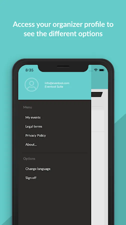 The event organizer must enter the login provided by Eventool (email and password) in order to manage the event and the access points.
