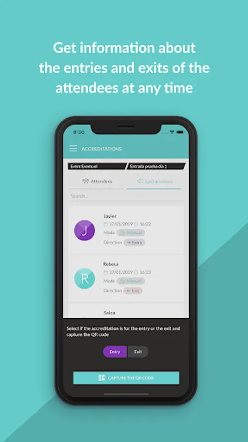 The Ev Suite app allows organizers to accredit attendees through QR technology or manually.