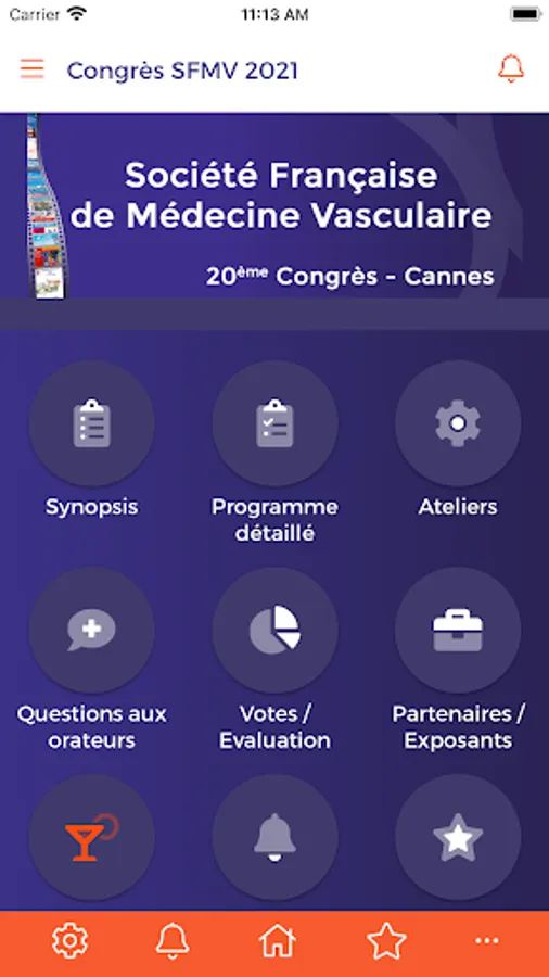 From this mobile application, you will be able to consult the program of the 20th SFMV congress in Cannes, create your agenda, see the summaries of the presentations, the speakers, evaluate the sessions, ask questions during the sessions, list of exhibitors, general information and contacts.