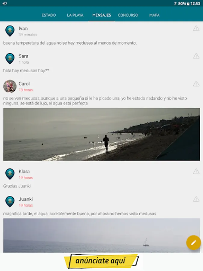 With the aim of creating that network of local observers along the entire coast, InfoJellyfish 2015 updated the application including a public chat in which any user who had the application could collaborate with their comment on the beach where they were or uploading an image of the beach and its surroundings.
