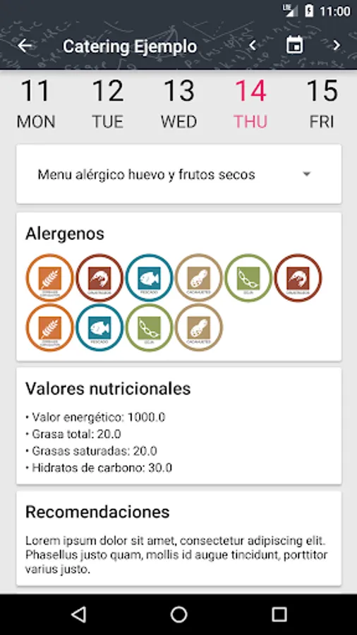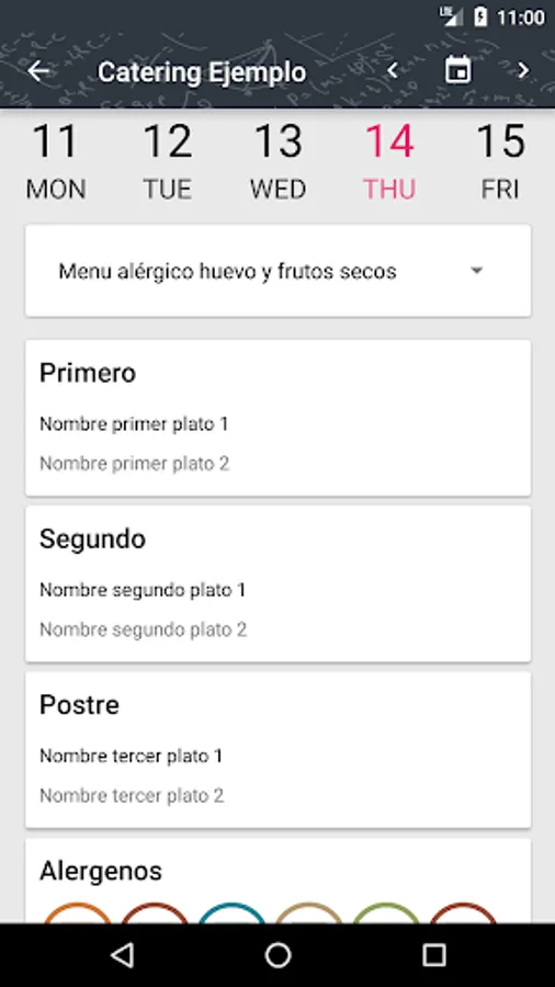 Our app informs parents and guardians of daily menus for each of the students assigned, providing information allergens, nutritional value and suggestions for dinner on each of the days when the student attends the dining room. Also reports of student behavior and how the student has eaten itself.