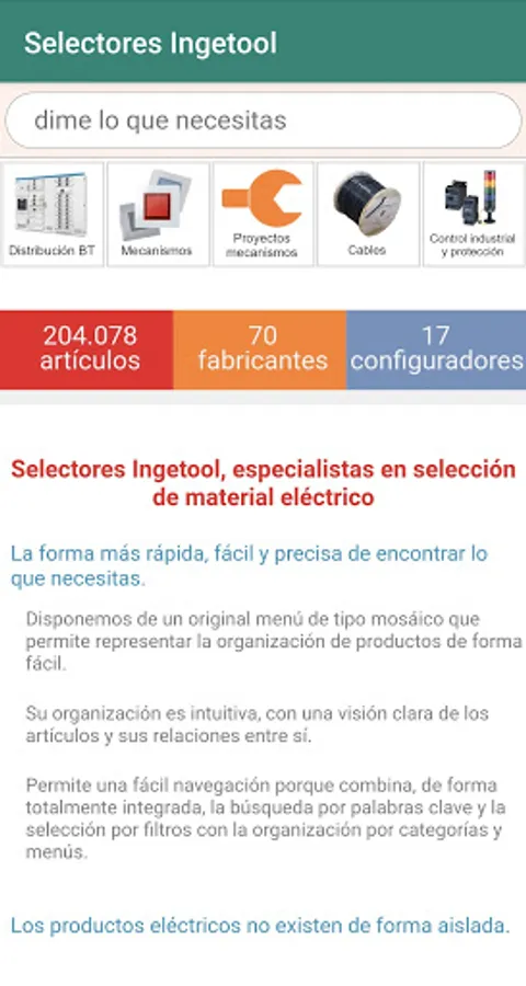 Selectors Ingetool is a tool to select electrical equipment in an easy, precise and fast way.