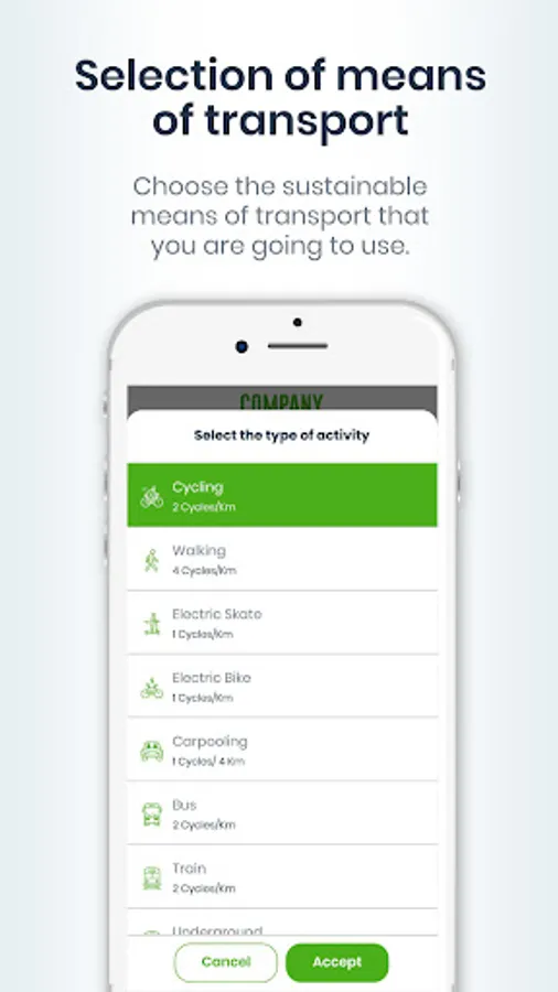 Your cycles will be your new renewable energy to save the environment and obtain large discounts and premiums. Your movements throughout the city will be more ecological with more sustainable vehicles: use public transport, turn your car into a sustainable care by sharing it, exchange urban cycling for sustainable cycling, skate around the city sustainably ...and win discounts and offers!