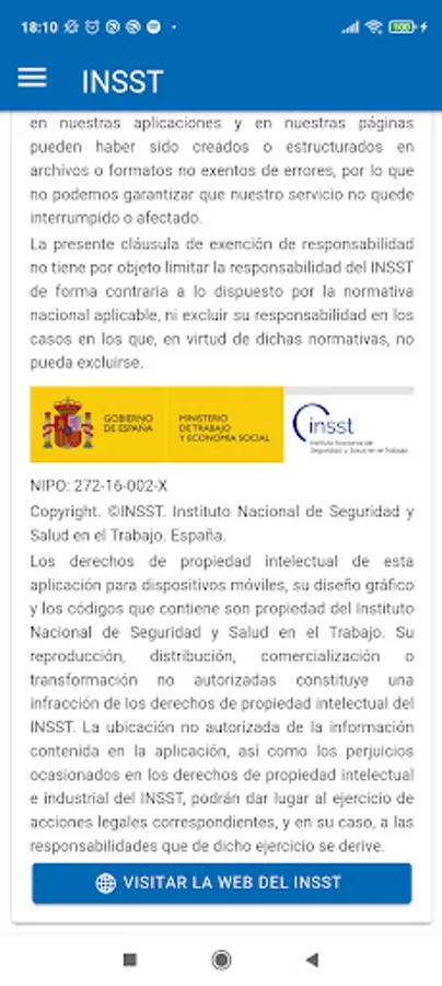 The application also provides information on the time needed to reach the values that give rise to an action and limit values set out in Royal Decree 1311/2005.
