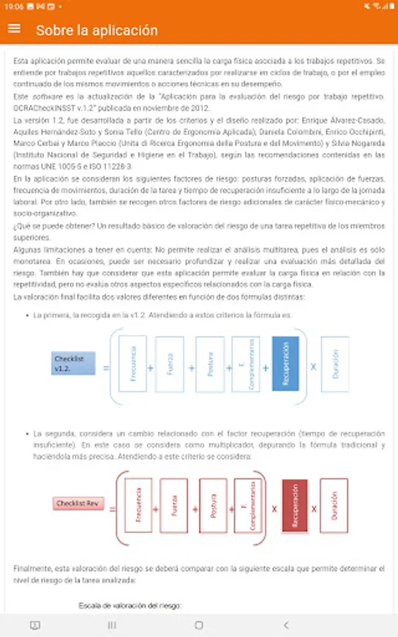 Description: This application allows you to easily evaluate the physical load associated with repetitive jobs. It is an update of the OCRA CheckINSST.