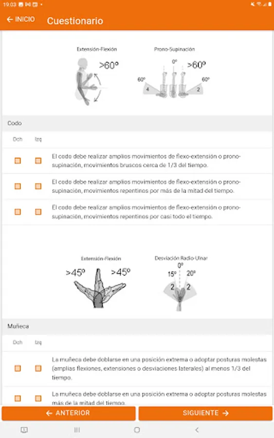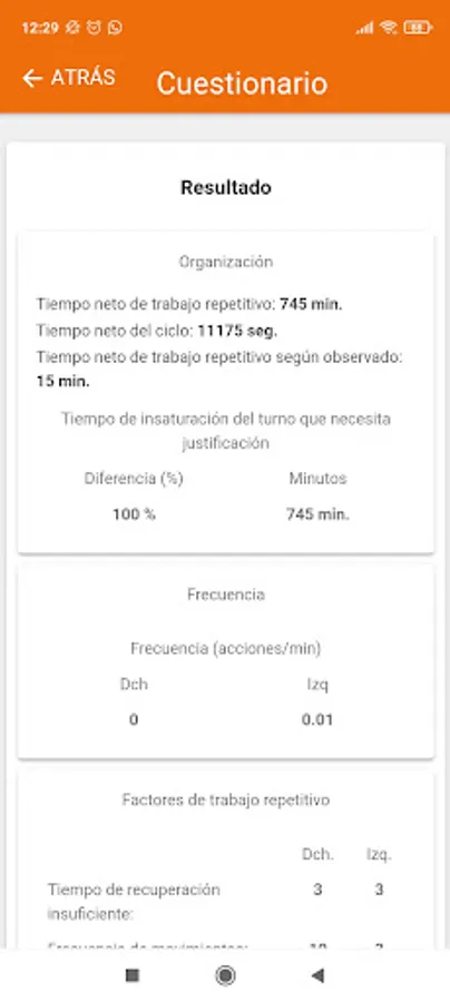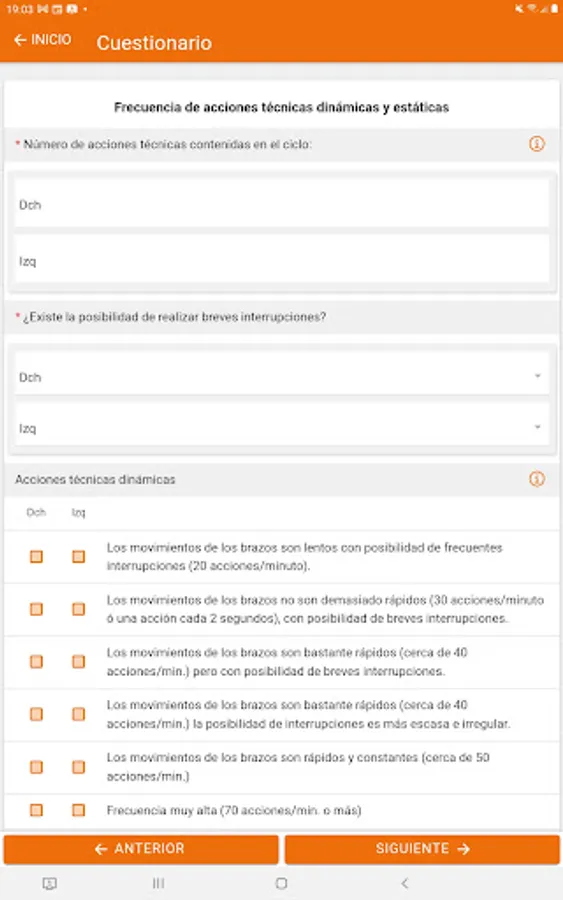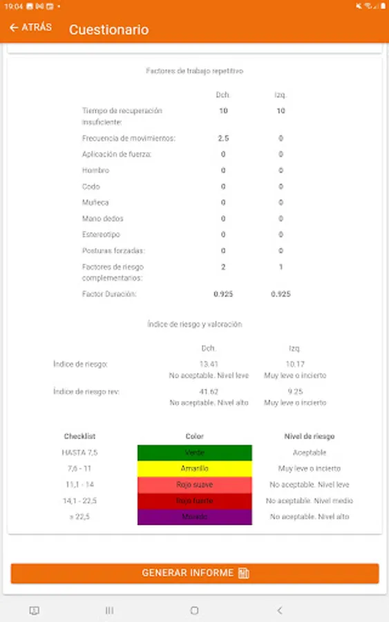 In the application, the following risk factors are considered: forced postures, application of forces, frequency of movements, duration of the task and insufficient recovery time throughout the working day. On the other hand, other additional risk factors of a physical-mechanical and socio-organizational nature are also collected. With an analysis of the same, a basic result of risk assessment of a repetitive task of the upper limbs is obtained.