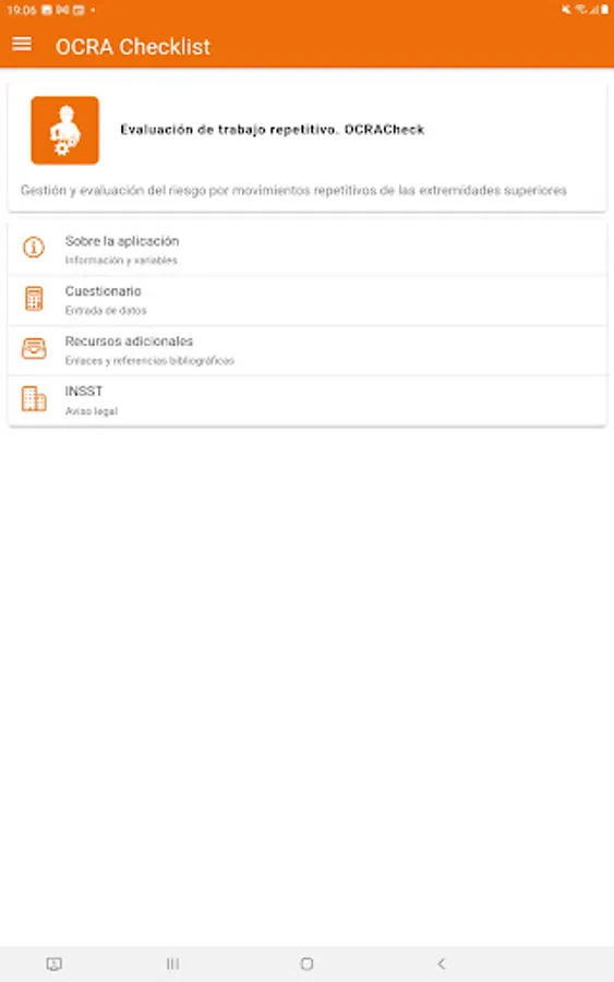 This application allows you to easily evaluate the physical load associated with repetitive jobs. It is an update of the OCRA CheckINSST.