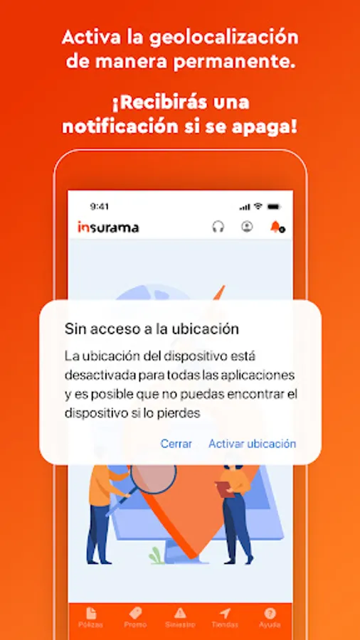 Ability to activate geolocation permanently. And if it goes out, you'll get a notification so you're always covered. Incorporation of push notifications so that you can be up to date with your processes.