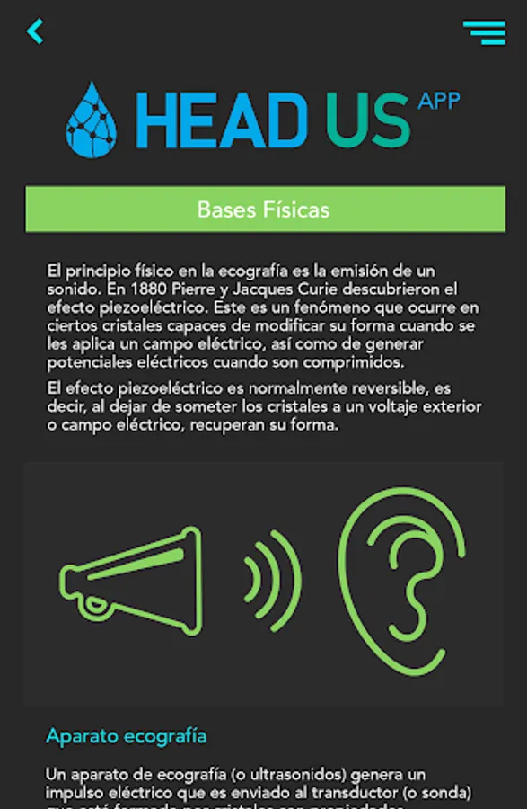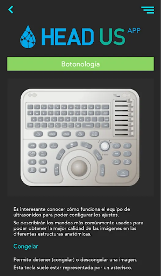 This application aimed at doctors, is an aid to learn the HEAD-US system, but it does not replace regulated learning, nor does it qualify for its use.