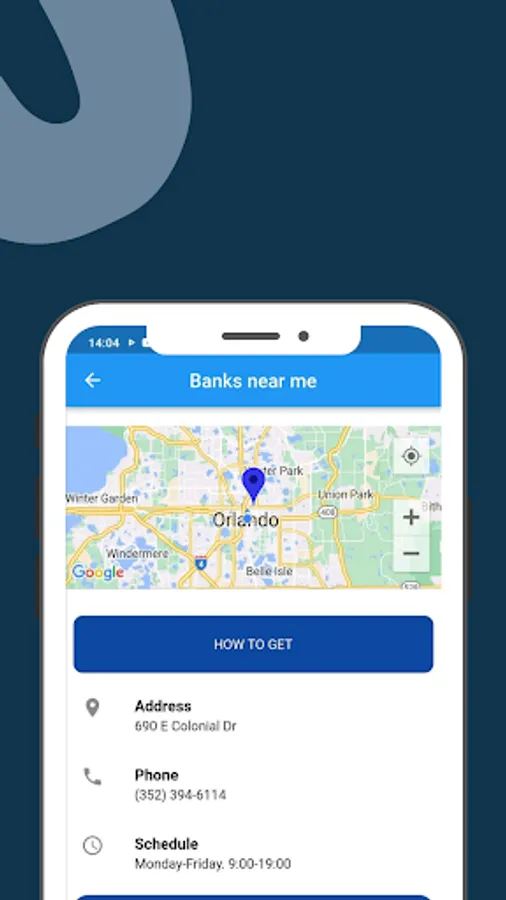 In a very easy way you can visit your bank thanks to the Google map integrated in our application. Thanks to your GPS location we can tell you which banks are closest to you. In the application we indicate all the information about the bank: address, telephone number, etc.