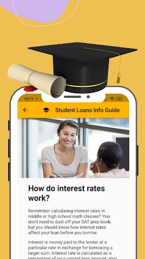 With our student loan app, you can learn about student loan forgiveness, the different companies that offer these loans, as well as the interest that this loan entails. These educational loans can be applied for higher education in the country as well as outside the country.