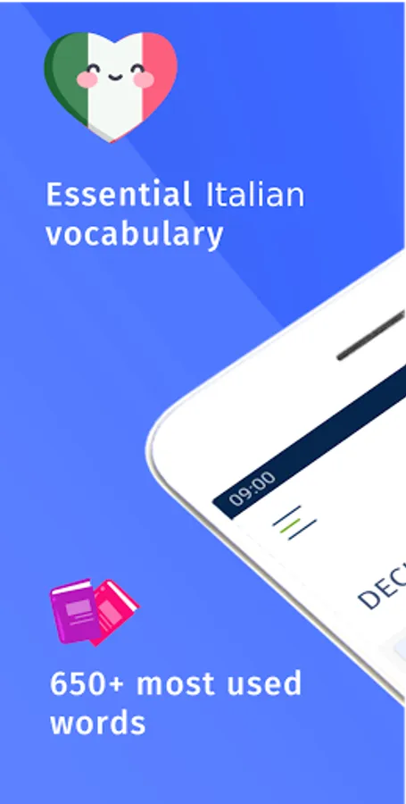 Our goal is to create apps that don't make your learning longer than it needs to be, so that you can set a realistic and achievable goal for your Italian learning. You know how many words the app contains, you know how many decks the cards are distributed in and it's up to you to set that goal.